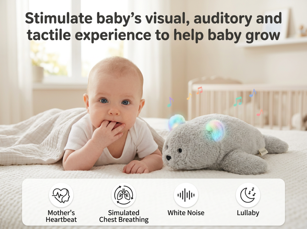 Equipped with heartbeat, breathing, white noise, and lullaby functions, delivering stable performance and effective soothing results.