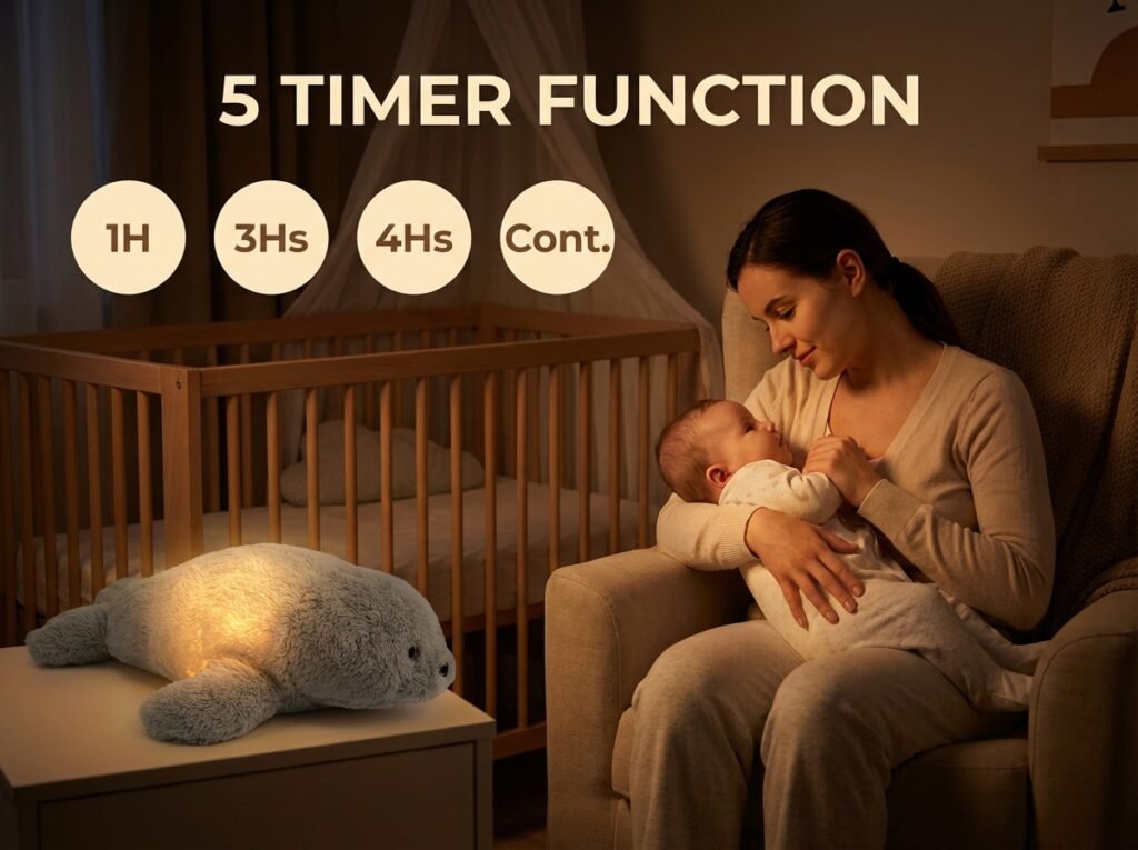 Choose from 1H, 3H, 4H, or continuous play with our easy timer settings. Whether for daytime naps or overnight sleep, this feature gives parents full control over sound duration to match any bedtime schedule.