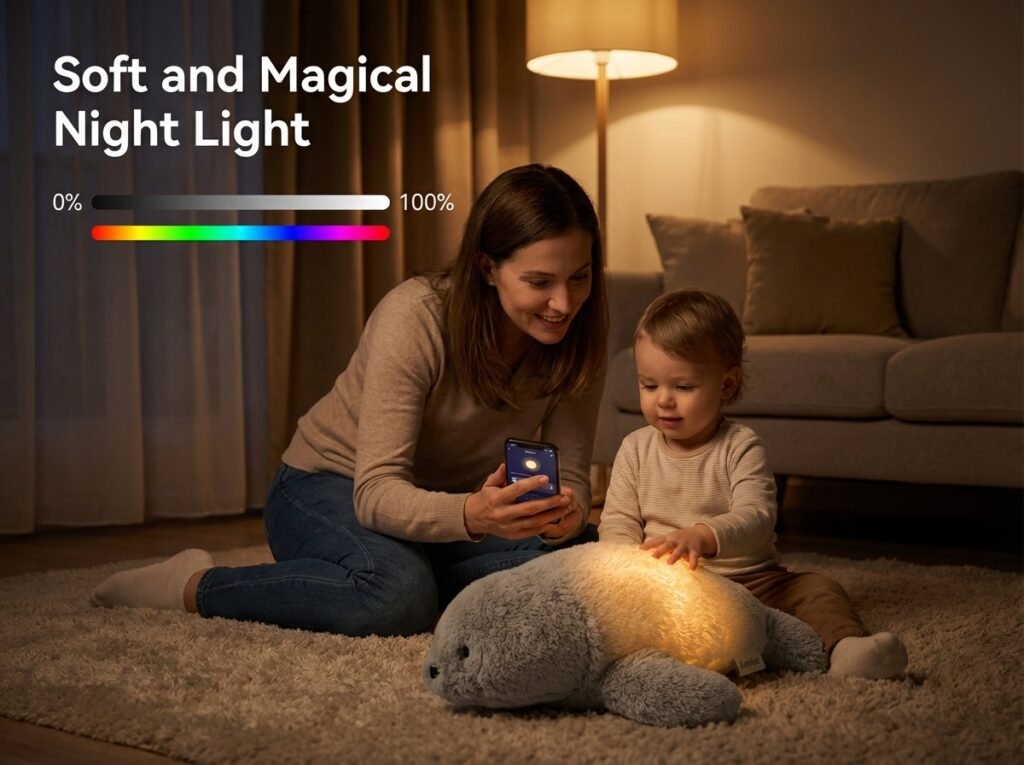 The built-in night light offers full RGB color options and brightness levels from 0% to 100%. Ideal for nighttime feeding or diaper changes, it provides just enough light without disturbing your baby’s sleep.